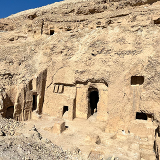 Architecturally also, this tomb is exceptional. It is situated in the south bend of the mountain, at a height of 193 meters and 11 vertical wells have been cut in the cemetery, in addition to two sloping wells in the northern half of the courtyard, all connected to the burial chambers of the owner of the tomb and his family.